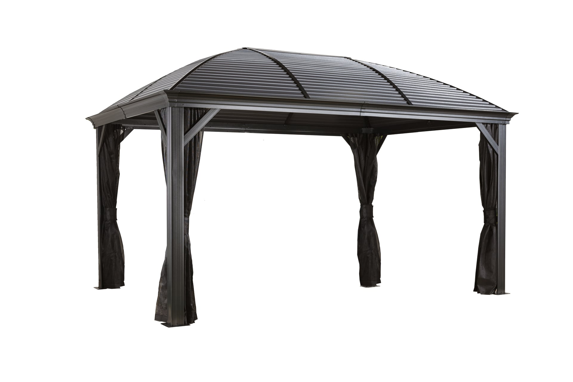 Moreno 10×14 Kanadas Nr. 1 in Pavillons SOJAG Premium Aluminium Pavillon Moreno 10×14 mit HardTop Modern, langlebig und eine tolle Optik sind Merkmale der neuen Aluminiumpavillons vom größten und bekanntesten kanadischen Pavillon Produzenten SOJAG. Der wesentliche Unterschied zu anderen Pavillons liegt im Material des Daches. Hier wird anstelle von Kunststoffplatten oder Stoff langlebiger und ständig formschöner Stahl verwendet. Außergewöhnliche 150kg/m² Schneelast und alle Aluminiumteile dauerhaft rostfrei! Die galvanische Beschichtung hält sämtlichen Witterungen ob Regen, Schnee oder Sonne ohne Probleme Stand. Das gleiche gilt für die massive Konstruktion aus resistentem, pulverbeschichtetem Aluminium (Pfostenstärke 12cm). Selbst die Schrauben bestehen aus rostfreiem Edelstahl. Der Pavillon muss daher im Winter nicht abgebaut werden. Mit integrierten Regenrinnen für einen geregelten Abfluss von Regenwasser. Im Lieferumfang enthalten sind Moskitonetze aus Nylon und zweigleisige Laufschienen zur zusätzlichen Anbringung von Vorhängen (sperarat als Zubehör erhältlich). Im Gegensatz zu anderen Modellen gilt hier nicht entweder oder, sondern es können sowohl Moskitonetze (bereits inbegriffen) als auch Vorhänge gleichzeitig genutzt werden. Das Modell Moreno ist in einem edlen Anthrazitgrau gehalten. Optisch passende Vorhänge (Dunkelgrau) separat erhältlich. Der Aufbau ist unkompliziert und kann durch 2 Personen mit Hilfe der detaillierten Schritt-für-Schritt Anleitung sowie handelsüblichen Werkzeugen durchgeführt werden. Für den Aufbau sollten circa 4-5 Stunden eingeplant werden. Die Füße der Pfosten besitzen jeweils 3 Bohrungen. Das bedeutet, Sie benötigen zur Befestigung am Boden 12 Schrauben und Dübel. – Breite: 423, – Gewicht: 132, – Höhe: 283, – Länge: 298