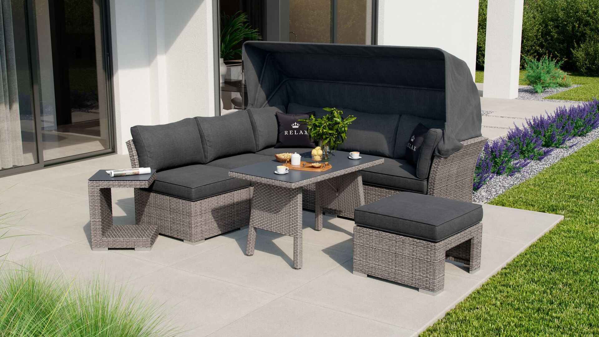 Multifunktions-Lounge Trivor, 5 Plätze, Alu/Kunststoff, dakar-nature Verwandeln Sie Ihren Garten oder Ihre Terrasse in eine vielseitige Wohlfühloase mit dem Multifunktionslounge-Set “Trivor” von CASAYA.