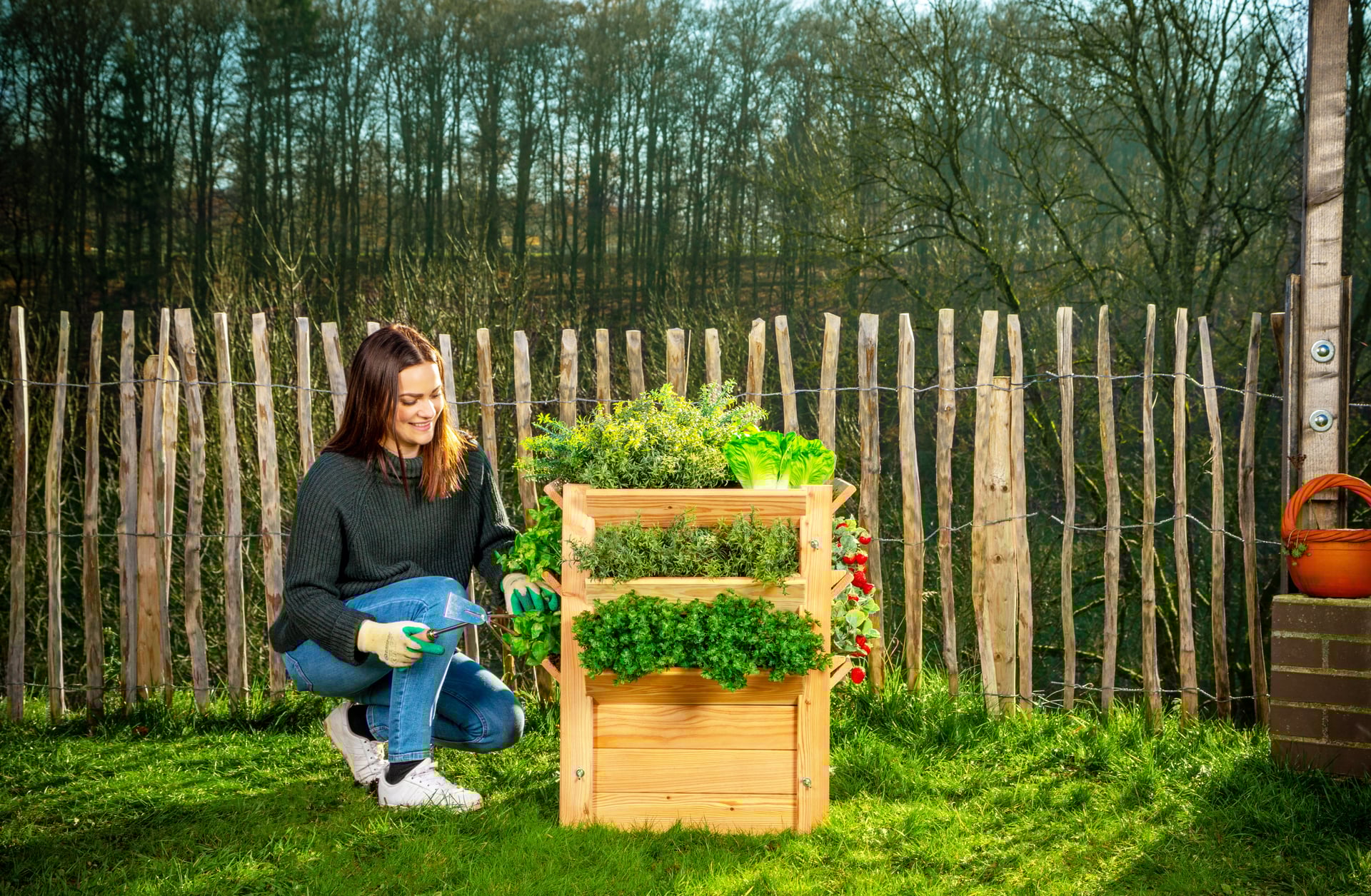 Premium Hochbeet Selbstversorger aufgepasst – Westmann Hochbeet mit besonderer Kulturfläche Das Westmann Hochbeet überzeugt nicht nur durch seine ergonomische Arbeitshöhe und große Kulturfläche, sondern punktet auch beim Thema Nachhaltigkeit, denn es besteht zu 100% aus Lärchenholz aus heimischen Wäldern. Lärchenholz ist eines der härtesten einheimischen Hölzer und gilt als besonders stabil und langlebig. Die angenehme Arbeitshöhe des Hochbeets ermöglicht einen rückenschonenden Gärtnerkomfort, ganz ohne lästiges Bücken. Zudem schützt die Höhe das Pflanzgut vor Tieren und sorgt so für ein nahezu unkraut- und schneckenfreies Gartenerlebnis. Gleichzeitig wird die Erde in einem Hochbeet besser erwärmt und sorgt so für ein schnelleres Wachstum Ihrer Pflanzen. Das Besondere am Westmann Premium Hochbeet: Durch die zusätzliche seitliche Nutzungsmöglichkeit verdoppelt sich die Kulturfläche (z.B. optimal zur Anzucht von Erdbeeren geeignet). Ein weiterer Vorteil: Für ein Hochbeet braucht es keinen eigenen Garten. Da nur wenig Platz benötigt wird, ist auch ein Gärtnern auf dem eigenen Balkon oder der Terrasse möglich. Der Bepflanzung des Hochbeets sind dabei keine Grenzen gesetzt. Wie wäre es zum Beispiel mit einem eigenen kleinen Kräutergarten oder frischem Gemüse, jederzeit griffbereit? Hochbeete lassen sich auch optimal als Grundstücksbegrenzung einsetzen — praktisch und individuell zugleich. – Breite: 65, – Gewicht: 19,5, – Höhe: 73, – Länge: 65, – Material: Holz