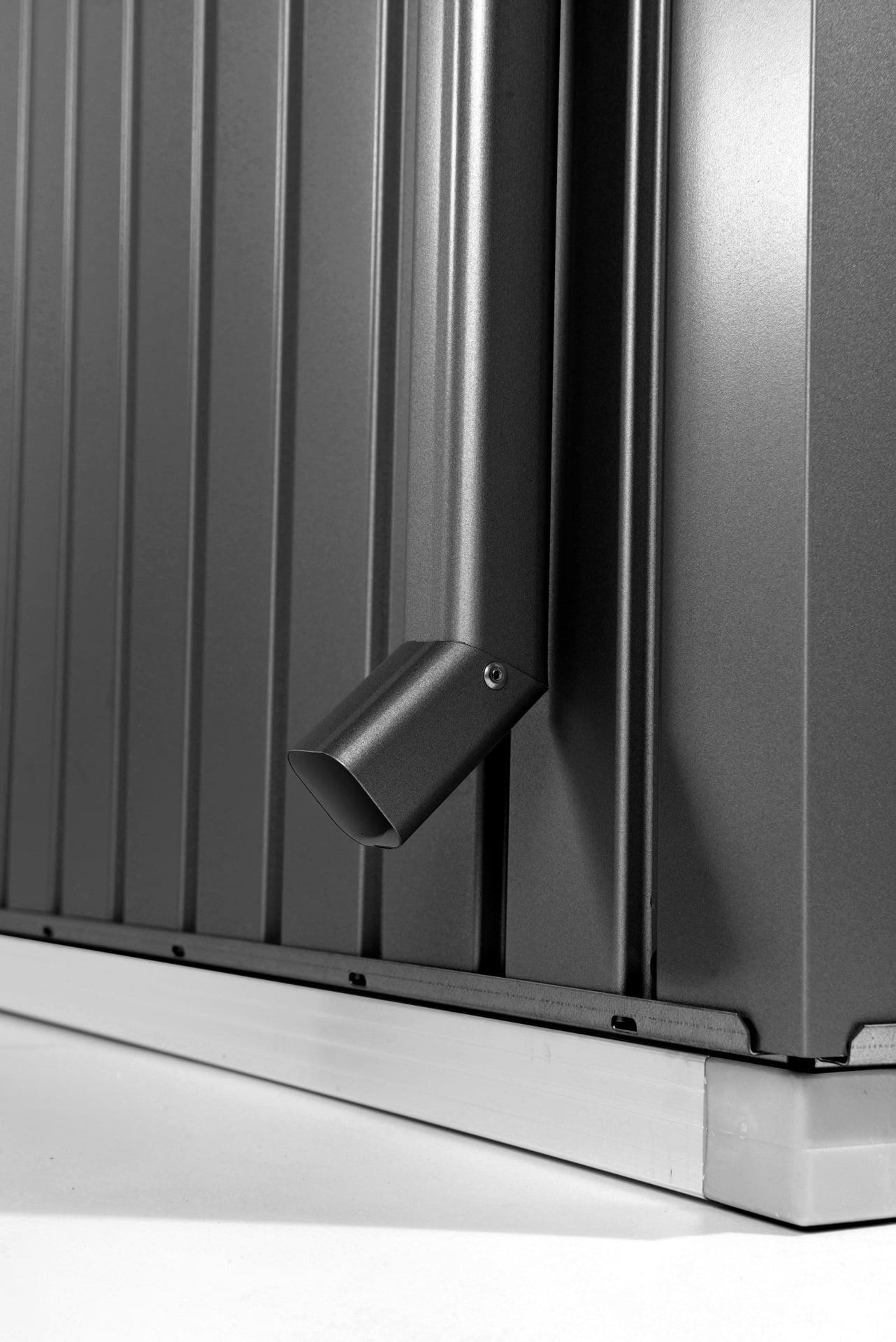Das Regenfallrohr Set für Ihr Biohort Gartenhaus leitet das Regenwasser vom Dach ab. Dadurch werden Ausschwemmungen von Gehwegplatten sowie eine überdurchschnittlich hohe Wasseransammlung bei Regen rund um das Gerätehaus verringert. Das Regenfallrohr Set für Ihr Gerätehaus beinhaltet 2 Stück Regenfallrohre mit je einem Auslaufbogen, um die Abflussrichtung noch besser steuern zu können. Es besteht aus feuerverzinktem, polyamid-einbrennlackiertem Stahlblech. Das Befestigungsmaterial wird mitgeliefert.