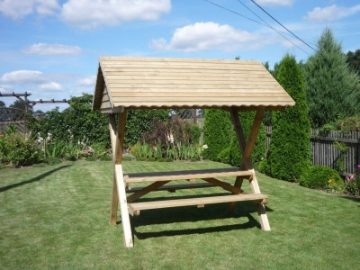 ?berdachte Sitzgruppe Forest Picknicktisch aus impr?gniertem Kiefernholz beinhaltet 1 Tisch mit 2 B?nken Massive Ausf?hrung aus kesseldruckimpr?gniertem Kiefernholz! Ideal f?r Garten, Balkon, Terrasse, Gastronomie, Vereinsheime, Grillh?tten … Abmessungen: Gesamtma?e ca. 220 x 200 cm Firsth?he: ca. 230 cm Dachseitenh?he: ca. 190 cm Dachbreite: ca. 240 cm Tisch: ca. 70 x 200 cm B?nke: ca 24 x 200 cm Produktmerkmale: Picknicktisch mit Dach f?r 6 Personen aus impr?gniertem Kiefernholz Massive Ausf?hrung Lieferung als vorgefertigter (Elemente) Bausatz Versand erfolgt per Spedition Durch die Kesseldruckimpr?nierung bis auf den Holzkern ist die Sitzgruppe auch ohne Streichen witterungsbest?ndig. Der Picknicktisch wird teilmontiert in Elementbauweise geliefert. Die Sitzgruppe wird unlasiert, wie in der Abbildun…