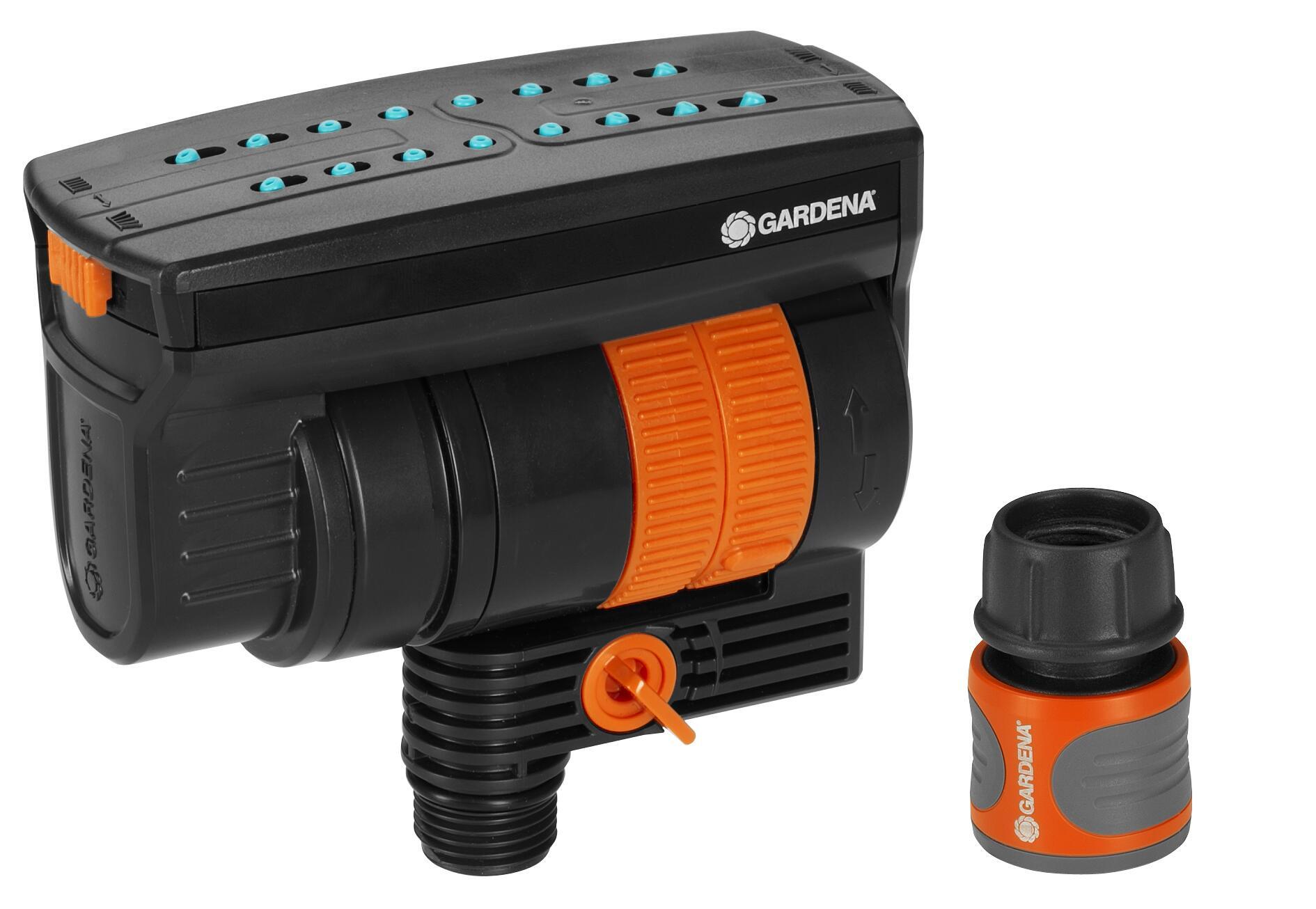 Sprinklersystem Pipeline Viereckregner Der Pipeline Viereckregner von ist Teil des Pipeline Systems, schnell an einer Wassersteckdose mit nur einem Klick angeschlossen und dann sofort einsatzbereit. Mehrere Einstellmöglichkeiten bieten eine Vielfalt an Optionen für die Gartenbewässerung. Die Intensität lässt sich durch eine Regulierung des Wassermengendurchflusses einstellen. Das ermöglicht eine individuelle Anpassung, zum Beispiel für die Bewässerung des Rasens oder des Gemüsebeetes. Für eine präzise, flexible und gleichmäßige Bewässerung auf einer Fläche von 9 bis 216 m² sorgen die Düsen des Viereckregners. Durch die gleichmäßige Bewässerung können auch keine Pfützen entstehen. Zusätzlich lässt sich mit Hilfe der Einstellregler sowohl die Reichweite zwischen 3 und 18 Metern als auch die Sprengbreite zwischen 3 und 12 Metern regulieren. Sogar eine Bewegung des Regnerkopfes um 360° ist per Hand möglich. Ein weiteres Merkmal ist die leichte Wartung des Gartensprengers. Der eingebaute Filter im Regner ist herausnehmbar und unter fließendem Wasser zu reinigen, während die aus weichem Kunststoff bestehenden Sprühdüsen mit dem Finger abgewischt werden können, um eventuelle Kalkablagerungen zu entfernen. Im Sprinkler sind hochwertige Materialien verbaut, die ihn vor UV-Licht schützen. Beim Pipeline Viereckregner handelt es sich um ein Qualitätsprodukt Made in Europe.