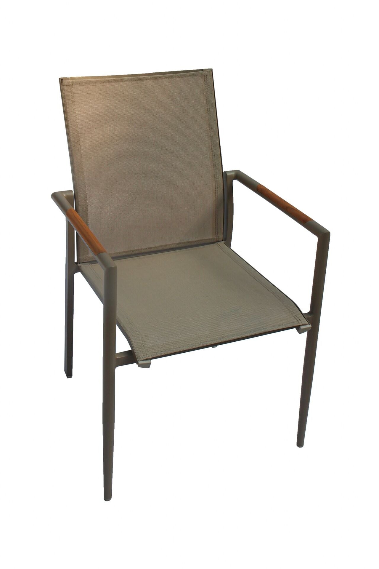 Das schlichte, moderne Design lässt sich mühelos mit verschiedenen Tischmodellen kombinieren und fügt sich harmonisch in jedes Outdoor-Ambiente ein. Die Teakholz-Elemente verleihen dem Stuhl eine warme, natürliche Ausstrahlung und sind zudem besonders wetterbeständig.