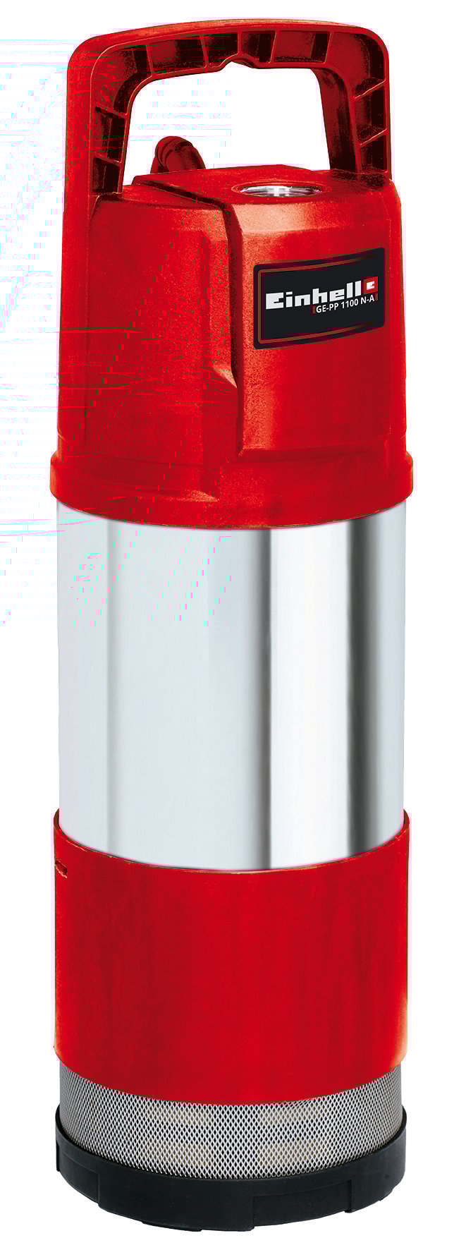 Tauchdruckpumpe GE-PP 1100 N-A Die Einhell Tauchdruckpumpe GE-PP 1100 N-A mit Automatikfunktion arbeitet kraftvoll und robust, wenn Klarwasser aus Zisternen, Schächten, Brunnen und Wasserreservoirs gefördert werden soll. Bei maximal 45 Meter Förderhöhe beträgt die Eintauchtiefe bis zu 12 Meter. Die 1.100 Watt Leistung ermöglichen im Dauerbetrieb eine maximale Fördermenge von 6.000 Litern. mit Trockenlaufsicherung und Überlastschalter wurde auch auf die Sicherheit viel Wert gelegt. Robustheit verleiht der Druckanschluss mit Edelstahleinsatz und eine hochwertige Gleitringdichtung. 4 Pumpenräder sorgen für einen extra hohen Förderdruck. Das Gehäuse ist aus rostfreiem Edelstahl. Gut erreichbar ist der Schlauchanschluss der Größe 33, 3mm (1″ IG) an der Pumpenoberseite.