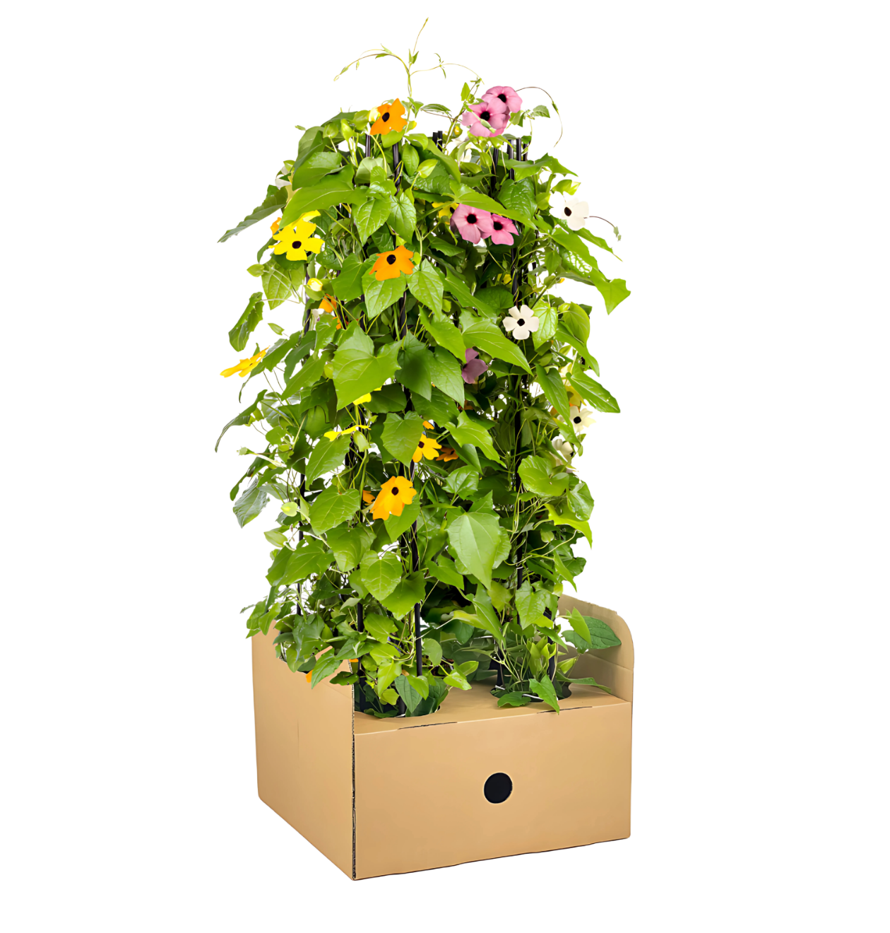 Die Schwarzäugige Susanne gehört zur Familie der Acanthaceae. Sie stammt aus Ostafrika. Bereits seit dem 19. Jahrhundert wird sie in Europa als Zierpflanze verwendet. Die Pflanzen im “Sunny Susy Mix” wachsen schnell und bilden viele Blüten. Sie entwickeln dichte Triebe und benötigen eine Rankhilfe oder ausreichend Platz zum Hängen. Der Standort sollte sonnig bis halbschattig sein. Die Erde sollte durchlässig und nährstoffreich sein. Staunässe ist zu vermeiden. Regelmäßiges Gießen fördert das Wachstum. Während der Hauptwachstumszeit von Mai bis September kann ein wöchentlicher Flüssigdünger eingesetzt werden. Die Pflanzen sind nicht winterhart, wachsen aber zuverlässig über die gesamte Saison.