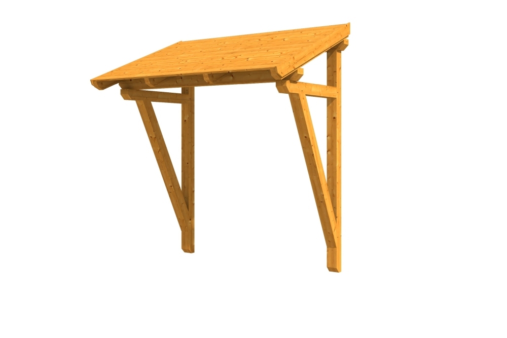 • Außenmaße 242 x 156 cm • massive Konstruktion aus hochwertigem Konstuktionvollholz (KVH-Fichte) • farblich behandelt in eiche hell • Ständer 12 x 12 cm • Pfetten 12 x 12 cm • Sparren 6 x 12 cm • echte Zapfen-Verbindungen • gekervte Sparren • 20 mm Dachschalung • Dachschindeln als Zubehör erhältlich • Lieferung ohne Wandbefestigungsmaterial