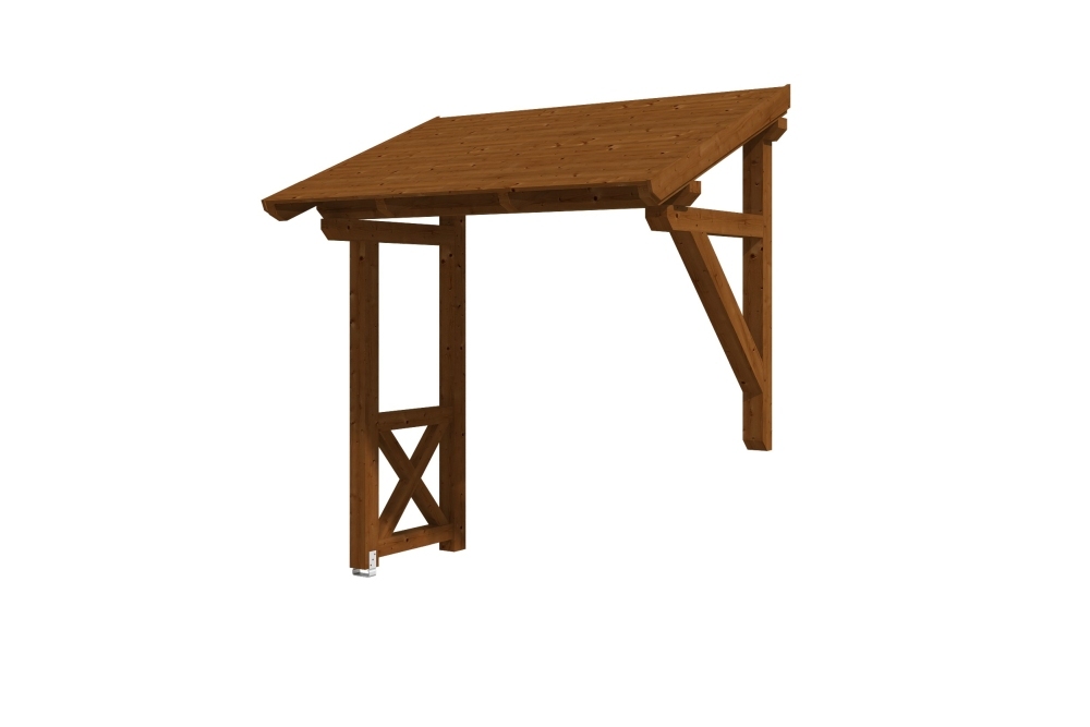 • Außenmaße 242 x 156 cm • massive Konstruktion aus hochwertigem Konstuktionvollholz (KVH-Fichte) • farblich behandelt in nussbaum • Ständer 12 x 12 cm • Pfetten 12 x 12 cm • Sparren 6 x 12 cm • echte Zapfen-Verbindungen • gekervte Sparren • inkl. Aufschraubstütze • 20 mm Dachschalung • Dachschindeln als Zubehör erhältlich • Lieferung ohne Wandbefestigungsmaterial