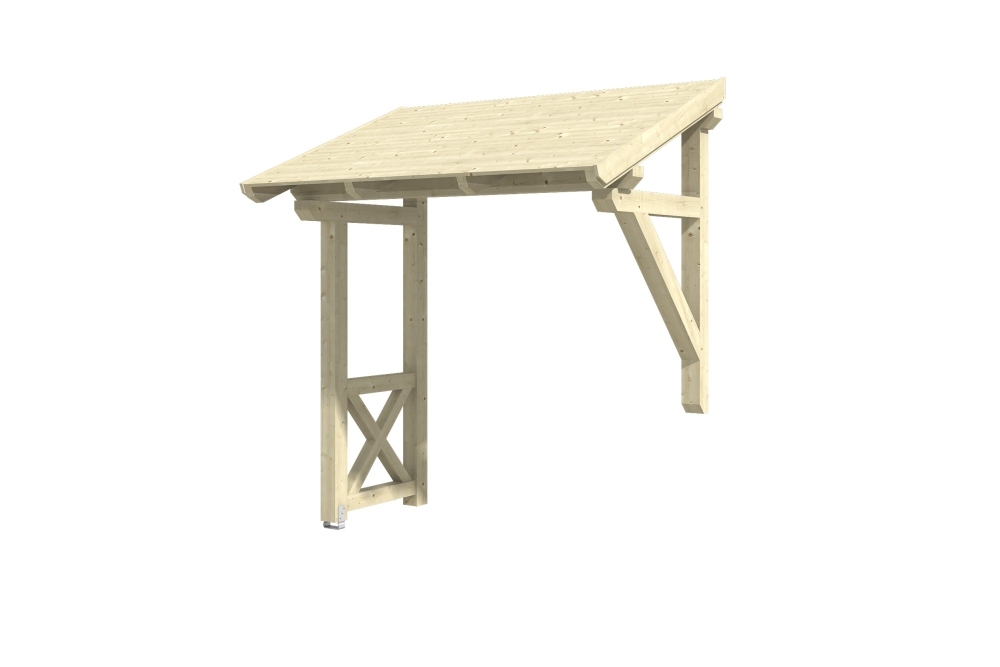• Außenmaße 242 x 156 cm • massive Konstruktion aus hochwertigem Konstuktionvollholz (KVH-Fichte) • farblich unbehandelt • Ständer 12 x 12 cm • Pfetten 12 x 12 cm • Sparren 6 x 12 cm • echte Zapfen-Verbindungen • gekervte Sparren • inkl. Aufschraubstütze • 20 mm Dachschalung • Dachschindeln als Zubehör erhältlich • Lieferung ohne Wandbefestigungsmaterial