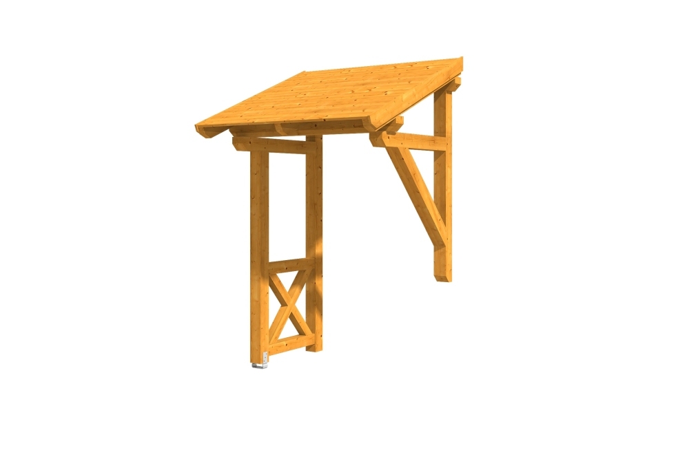 • Außenmaße 176 x 156 cm • massive Konstruktion aus hochwertigem Konstuktionvollholz (KVH-Fichte) • farblich behandelt in eiche hell • Ständer 12 x 12 cm • Pfetten 12 x 12 cm • Sparren 6 x 12 cm • echte Zapfen-Verbindungen • gekervte Sparren • inkl. Aufschraubstütze • 20 mm Dachschalung • Dachschindeln als Zubehör erhältlich • Lieferung ohne Wandbefestigungsmaterial