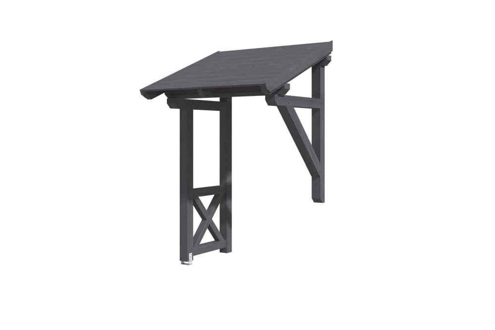 • Außenmaße 176 x 156 cm • massive Konstruktion aus hochwertigem Konstuktionvollholz (KVH-Fichte) • farblich behandelt in schiefergrau • Ständer 12 x 12 cm • Pfetten 12 x 12 cm • Sparren 6 x 12 cm • echte Zapfen-Verbindungen • gekervte Sparren • inkl. Aufschraubstütze • 20 mm Dachschalung • Dachschindeln als Zubehör erhältlich • Lieferung ohne Wandbefestigungsmaterial