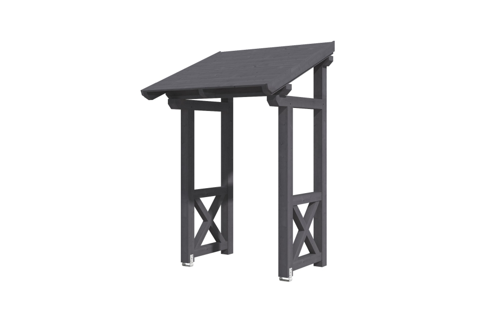 • Außenmaße 176 x 156 cm • massive Konstruktion aus hochwertigem Konstuktionvollholz (KVH-Fichte) • farblich behandelt in schiefergrau • Ständer 12 x 12 cm • Pfetten 12 x 12 cm • Sparren 6 x 12 cm • echte Zapfen-Verbindungen • gekervte Sparren • inkl. 2 Aufschraubstützen • 20 mm Dachschalung • Dachschindeln als Zubehör erhältlich • Lieferung ohne Wandbefestigungsmaterial