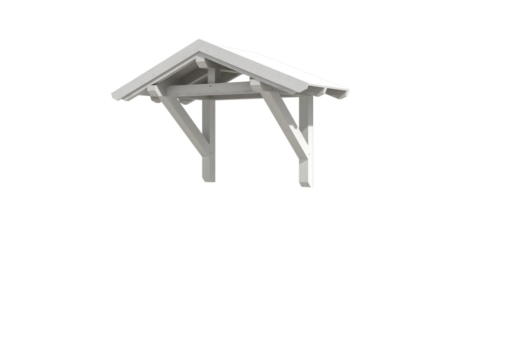 • Außenmaße 247 x 115,5 cm • massive Konstruktion aus hochwertigem Konstuktionvollholz (KVH-Fichte) • farblich behandelt in weiß • Ständer 12 x 12 cm • Pfetten 12 x 12 cm • Sparren 6 x 12 cm • echte Zapfen-Verbindungen • gekervte Sparren • 20 mm Dachschalung • Dachschindeln als Zubehör erhältlich • Lieferung ohne Wandbefestigungsmaterial