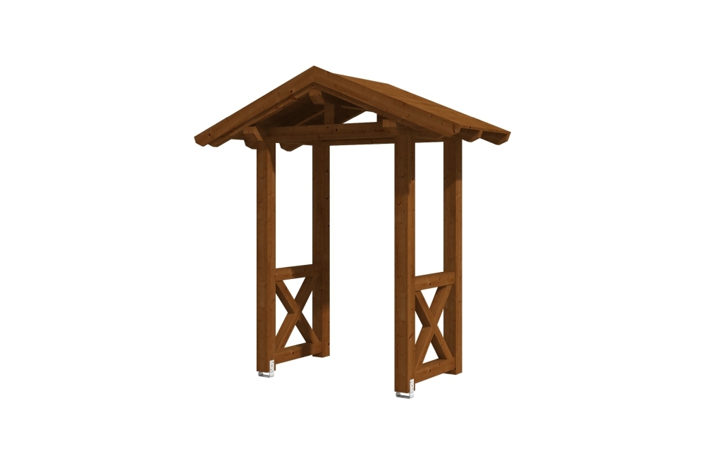 • Außenmaße 247 x 115,5 cm • massive Konstruktion aus hochwertigem Konstuktionvollholz (KVH-Fichte) • farblich behandelt in nussbaum • Ständer 12 x 12 cm • Pfetten 12 x 12 cm • Sparren 6 x 12 cm • echte Zapfen-Verbindungen • gekervte Sparren • inkl. 2 Aufschraubstützen • 20 mm Dachschalung • Dachschindeln als Zubehör erhältlich • Lieferung ohne Wandbefestigungsmaterial