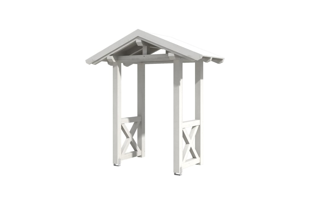 • Außenmaße 247 x 115,5 cm • massive Konstruktion aus hochwertigem Konstuktionvollholz (KVH-Fichte) • farblich behandelt in weiß • Ständer 12 x 12 cm • Pfetten 12 x 12 cm • Sparren 6 x 12 cm • echte Zapfen-Verbindungen • gekervte Sparren • inkl. 2 Aufschraubstützen • 20 mm Dachschalung • Dachschindeln als Zubehör erhältlich • Lieferung ohne Wandbefestigungsmaterial
