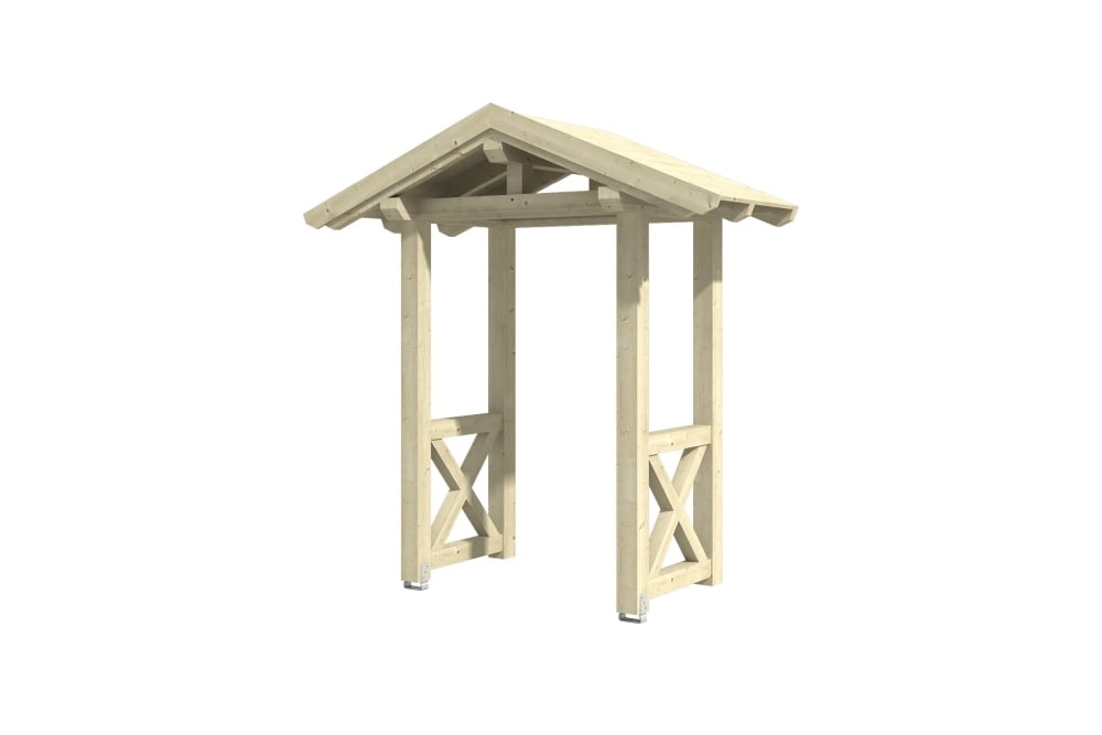 • Außenmaße 247 x 115,5 cm • massive Konstruktion aus hochwertigem Konstuktionvollholz (KVH-Fichte) • farblich unbehandelt • Ständer 12 x 12 cm • Pfetten 12 x 12 cm • Sparren 6 x 12 cm • echte Zapfen-Verbindungen • gekervte Sparren • inkl. 2 Aufschraubstützen • 20 mm Dachschalung • Dachschindeln als Zubehör erhältlich • Lieferung ohne Wandbefestigungsmaterial