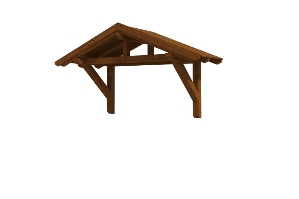 • Außenmaße 289 x 115,5 cm • massive Konstruktion aus hochwertigem Konstuktionvollholz (KVH-Fichte) • farblich behandelt in nussbaum • Ständer 12 x 12 cm • Pfetten 12 x 12 cm • Sparren 6 x 12 cm • echte Zapfen-Verbindungen • gekervte Sparren • 20 mm Dachschalung • Dachschindeln als Zubehör erhältlich • Lieferung ohne Wandbefestigungsmaterial