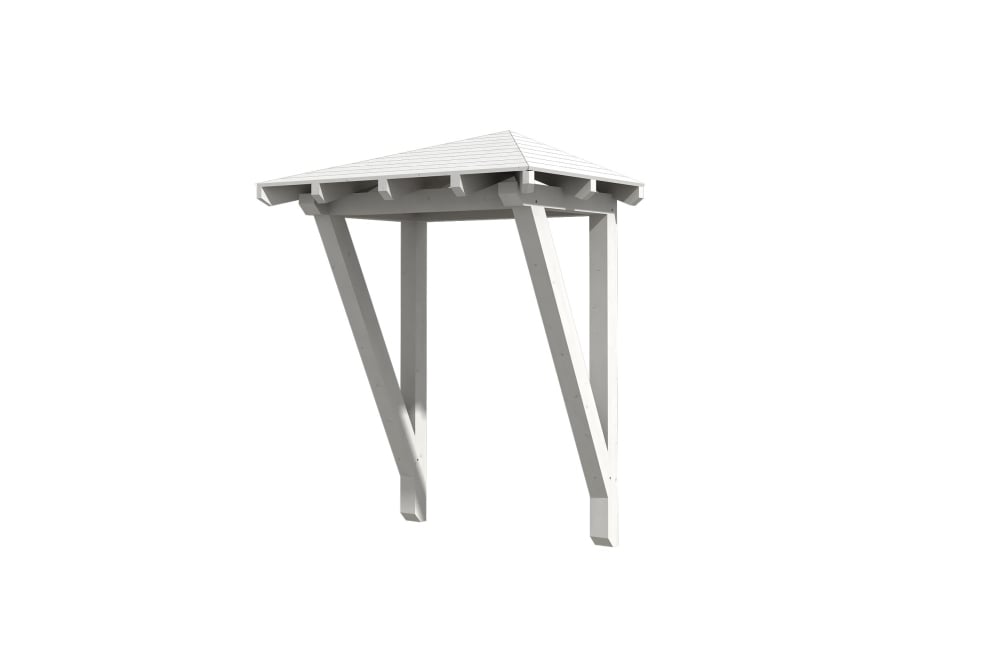 • Außenmaße 188 x 126 cm • massive Konstruktion aus hochwertigem Konstuktionvollholz (KVH-Fichte) • farblich behandelt in weiß • Ständer 12 x 12 cm • Pfetten 12 x 12 cm • Sparren 6 x 12 cm • echte Zapfen-Verbindungen • gekervte Sparren • abgeschrägte Gratsparren • 20 mm Dachschalung • Dachschindeln als Zubehör erhältlich • Lieferung ohne Wandbefestigungsmaterial