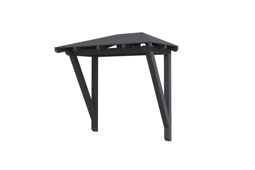 • Außenmaße 258 x 126 cm • massive Konstruktion aus hochwertigem Konstuktionvollholz (KVH-Fichte) • farblich behandelt in schiefergrau • Ständer 12 x 12 cm • Pfetten 12 x 12 cm • Sparren 6 x 12 cm • echte Zapfen-Verbindungen • gekervte Sparren • abgeschrägte Gratsparren • 20 mm Dachschalung • Dachschindeln als Zubehör erhältlich • Lieferung ohne Wandbefestigungsmaterial