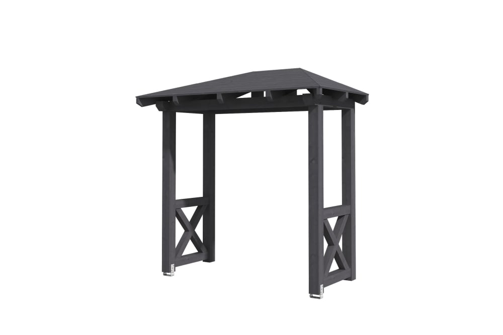 • Außenmaße 258 x 126 cm • massive Konstruktion aus hochwertigem Konstuktionvollholz (KVH-Fichte) • farblich behandelt in schiefergrau • Ständer 12 x 12 cm • Pfetten 12 x 12 cm • Sparren 6 x 12 cm • echte Zapfen-Verbindungen • gekervte Sparren • abgeschrägte Gratsparren • inkl. 2 Aufschraubstützen • 20 mm Dachschalung • Dachschindeln als Zubehör erhältlich • Lieferung ohne Wandbefestigungsmaterial