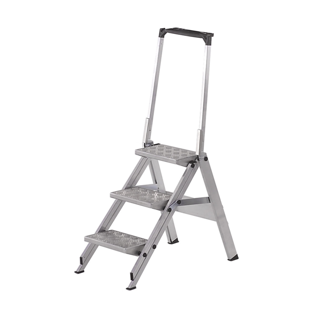 WAKÜ Little Jumbo Sicherheitstreppe Alu-Tritt + Bügel 3 StufenDie WAKÜ Little Jumbo Sicherheitstreppe / Klapptritt mit 3 Stufen Alu-Riffeltritt (mit Bügel) überzeugt durch ihre hochwertige und äußerst stabile Konstruktion, die ihr in der Ausgabe 2/2010 der Stiftung Warentest die Note 1,7 (Gut) eingebracht hat. Mit 2 Handgriffen ist die WAKÜ Treppe zusammenklappbar und somit äußerst leicht transportier- und verstaubar.Details Little Jumbo 320B: Extra breite Stufen für größtmögliche StandsicherheitErhältlich mit schwarzen Kunststoffbelägen oder rutschfestem Alu-RiffeltrittStabil, sicher, komfortabel und schnell zusammenklapp- und verstaubarHergestellt aus Alu, daher besonders leichtBG Bau förderfähiges ProduktMitglieder der BG Bau erhalten für die Anschaffung der Little Jumbo Sicherheitstreppe50% bis max. €300 zurückerstattet