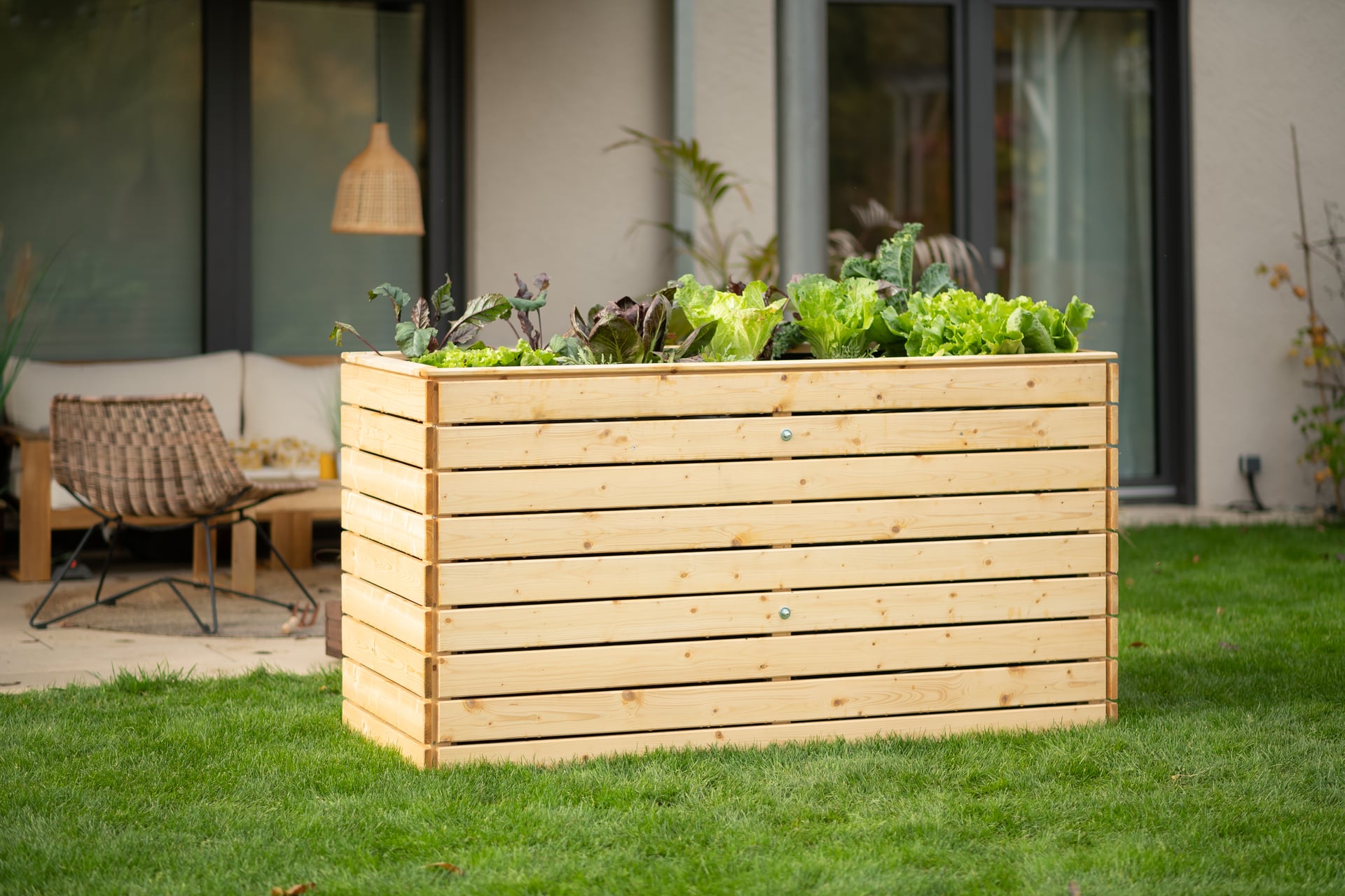 Westmann Holz Hochbeet Fichte Selbstversorger aufgepasst – Westmann Hochbeet Fichte mit großer Kulturfläche Das Westmann Hochbeet Fichte überzeugt nicht nur durch seine ergonomische Arbeitshöhe und große Kulturfläche, sondern punktet auch beim Thema Nachhaltigkeit, denn es besteht aus PEFC-zertifiziertem Fichtenholz. Fichtenholz ist eines der härtesten einheimischen Hölzer und gilt als besonders stabil und langlebig. Die angenehme Arbeitshöhe des Hochbeets ermöglicht einen rückenschonenden Gärtnerkomfort, ganz ohne lästiges Bücken. Zudem schützt die Höhe das Pflanzgut vor Tieren und sorgt so für ein nahezu unkraut- und schneckenfreies Gartenerlebnis. Gleichzeitig wird die Erde in einem Hochbeet besser erwärmt und sorgt so für ein schnelleres Wachstum Ihrer Pflanzen. Ein weiterer Vorteil: Für ein Hochbeet braucht es keinen eigenen Garten. Da nur wenig Platz benötigt wird, ist auch ein Gärtnern auf dem eigenen Balkon oder der Terrasse möglich. Der Bepflanzung des Hochbeets sind dabei keine Grenzen gesetzt. Wie wäre es zum Beispiel mit einem eigenen kleinen Kräutergarten oder frischem Gemüse, jederzeit griffbereit? Hochbeete lassen sich auch optimal als Grundstücksbegrenzung einsetzen — praktisch und individuell zugleich. – Breite: 70, – Gewicht: 50, – Höhe: 90, – Länge: 170, – Material: Holz