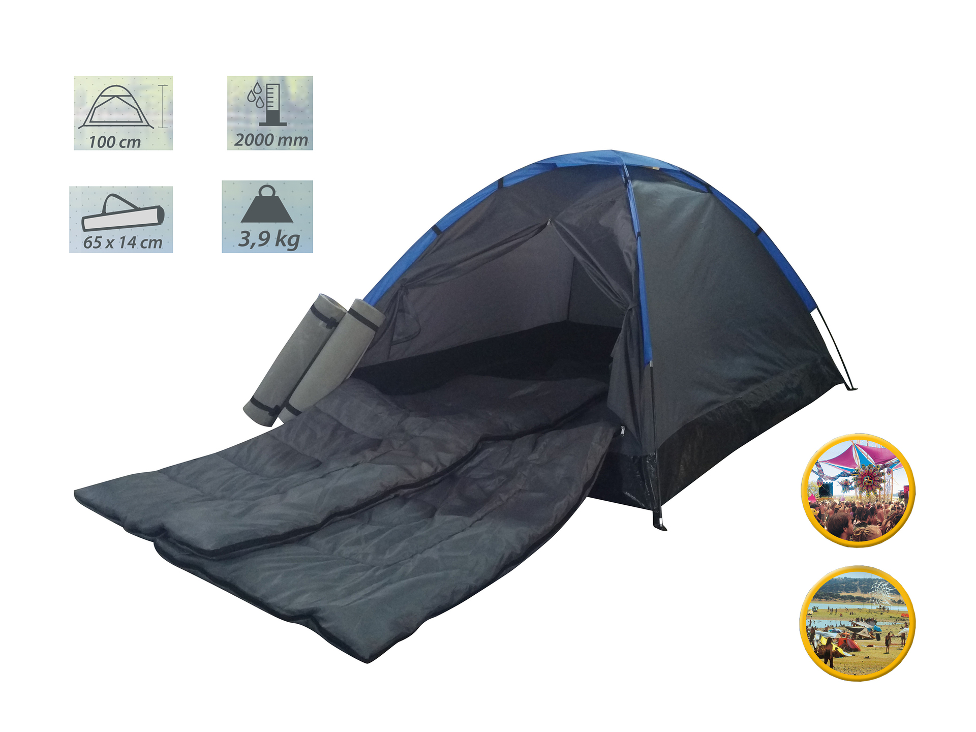 Zelt FESTIVAL, 205x150x105cm, inkl. Isomatten und Schlafsäcken € 59,99 inkl. MwSt.